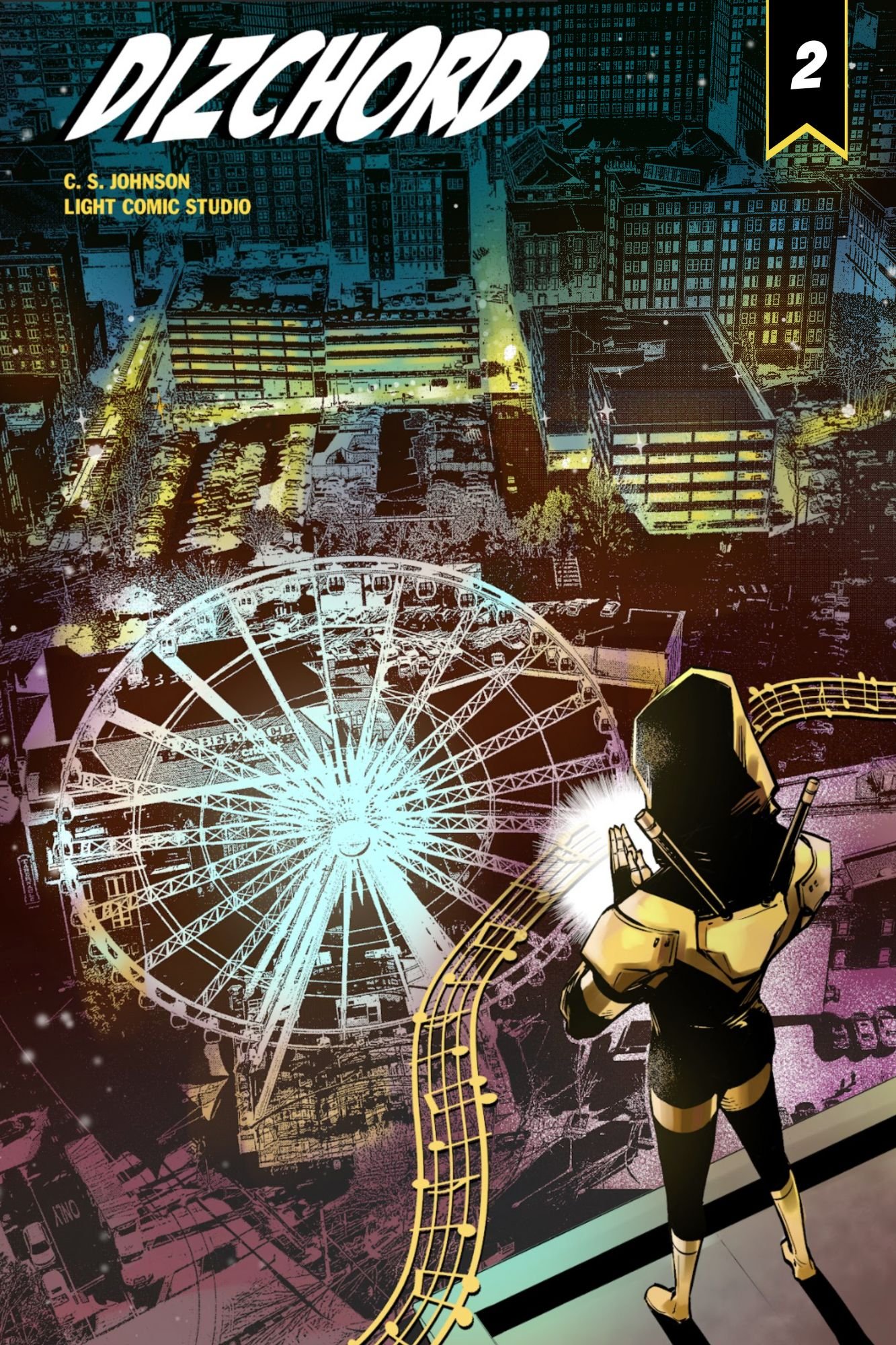 Filled with themes of struggle, hope, and cynicism, Dizchord #2 is the sequel to C. S. Johnson's original comic featuring Atlanta's musical superhero. With the city's human traffickers still at large, Dizchord will stop at nothing to bring justice and peace to his city.